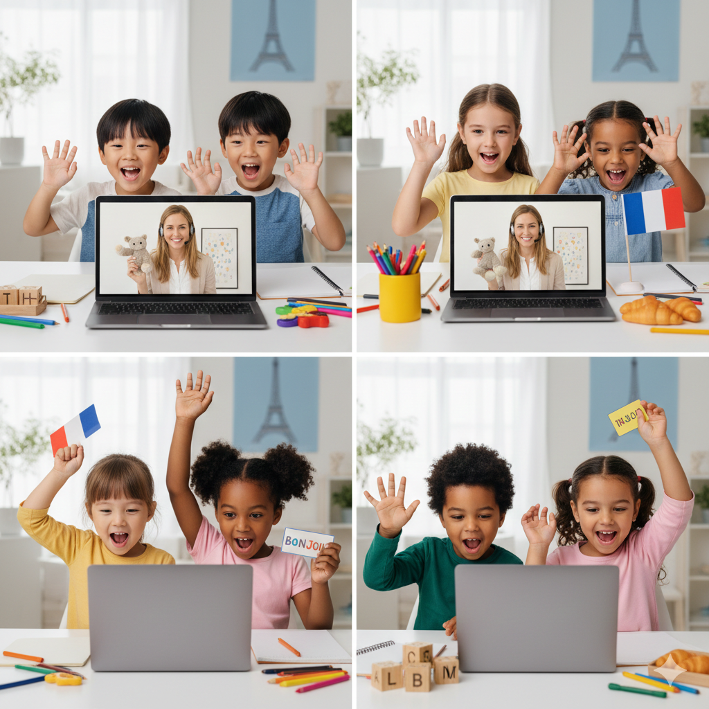 We use a child-focused methodology that blends fun with structure, allowing kids to absorb French naturally.